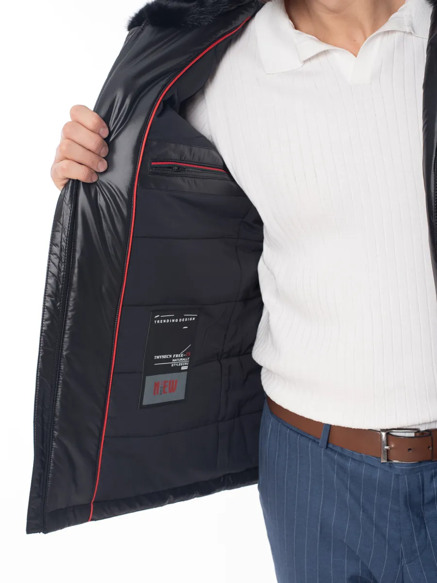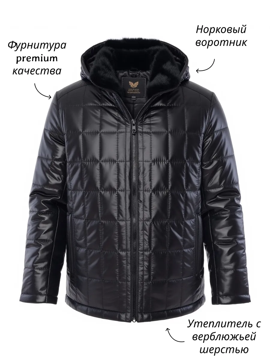 Мужская зимняя куртка - это настоящая находка для тех, кто ищет стильное и практичное решение для зимнего периода. Эта куртка выполнена из высококачественного материала. Куртка утеплена синтепоном и верблюжьей шерстью, что поможет вам чувствовать себя комфортно и тепло в любых погодных условиях. В то же время, она легкая и невероятно удобная, что обеспечивает свободу движений и не создает никаких неудобств при ношении. Главной особенностью куртки, является воротник из меха норки, это добавляет изюминки и смотрится дорого. Куртка зимняя мужская имеет два внешних кармана и съемный капюшон. Укороченный фасон стеганой куртки с капюшоном и универсальный черный цвет делают эту теплую куртку подходящей для мужчин любого возраста. Зимняя курточка представлена в различных размерах, включая большие, так что каждый сможет найти именно свой идеальный вариант. Данная модель подойдет для активной жизни и повседневных прогулок, ее можно сочетать с различными предметами гардероба. Стеганая куртка станет ярким акцентом в вашем стиле. В нашем магазине представлено большое количество мужской верхней одежды. Не упустите возможность приобрести качественную одежду для себя и своих близких!
