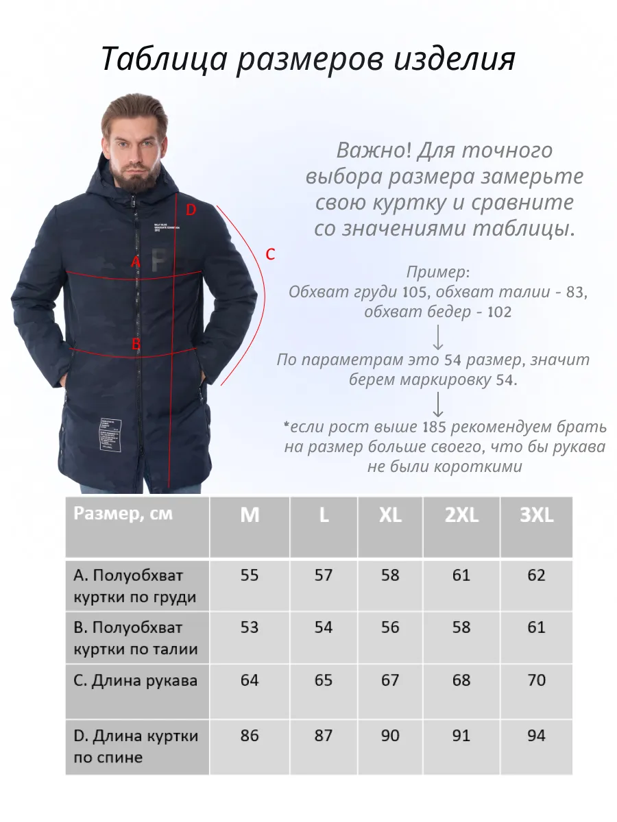Мужская зимняя куртка — это тёплая, надёжная и стильная верхняя одежда, созданная для морозов до –30°C. Модель объединяет в себе функциональность мужского пуховика, современный дизайн и максимальный комфорт. Такая зимняя куртка подойдёт для повседневной носки, активных прогулок и городского стиля. Удлинённый крой делает парку идеальным выбором для защиты от ветра и холода. Внутренний утеплитель сохраняет тепло, оставаясь лёгким и объёмным — это позволяет носить длинный пуховик даже при длительном нахождении на улице. Капюшон делает модель не только тёплой, но и стильной. Куртка зимняя с капюшоном отлично подходит для сильного ветра и снегопада. Если вы ищете куртку зимнюю мужскую больших размеров, модель представлена в расширенной размерной сетке — от стандартных до оверсайз. Свободный силуэт делает куртку оверсайз удобной и современной, идеально подходящей молодёжи. Эта зимняя теплая куртка — сочетание стиля, технологичных материалов и комфорта. Отлично подходит тем, кто выбирает надежный пуховик, современную верхнюю одежду и универсальный вариант на зиму.