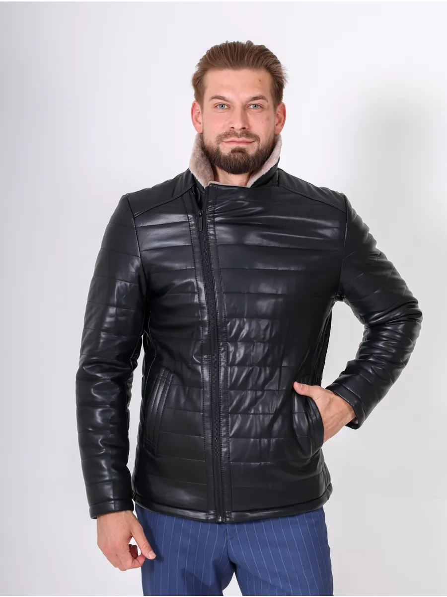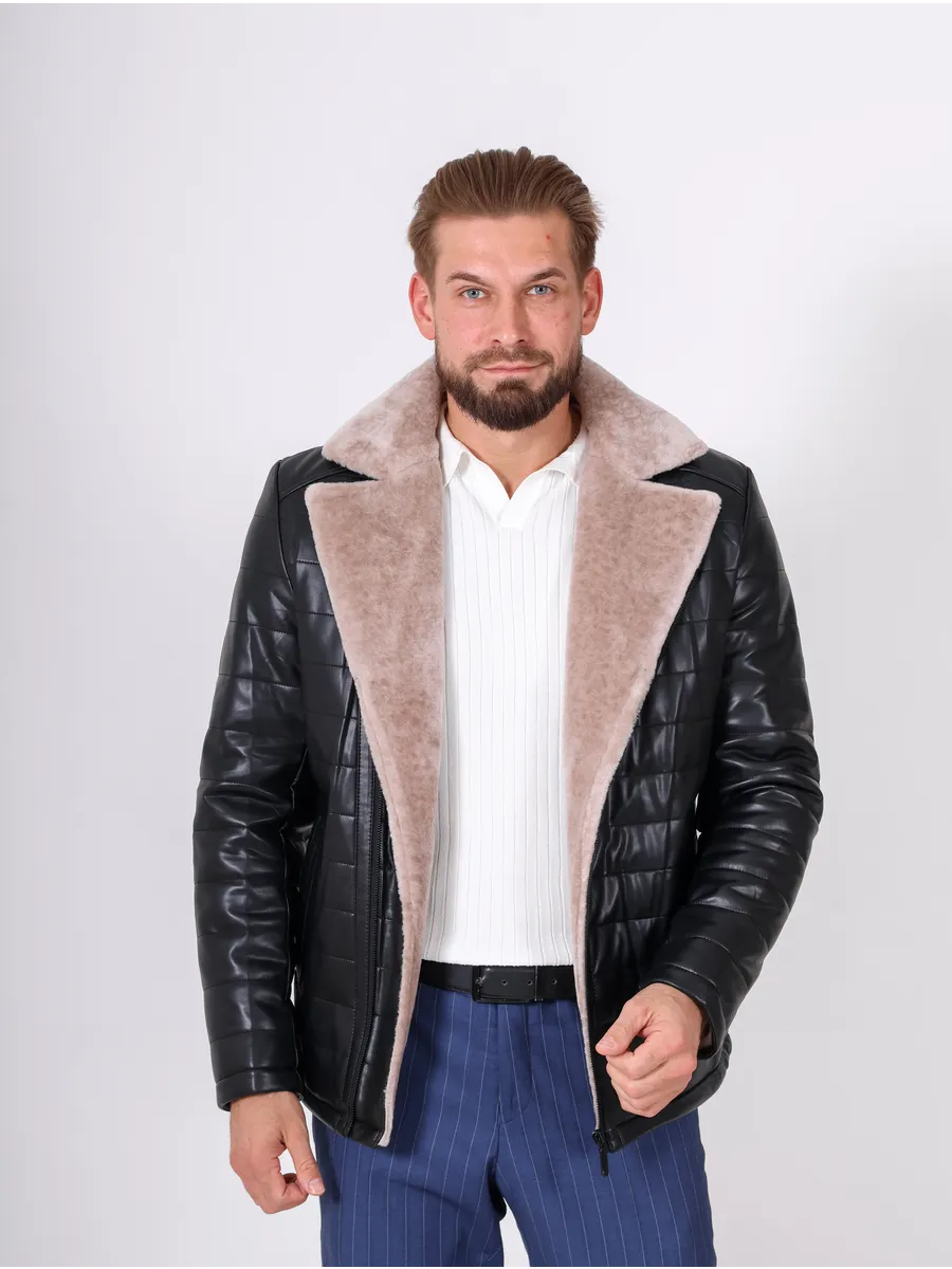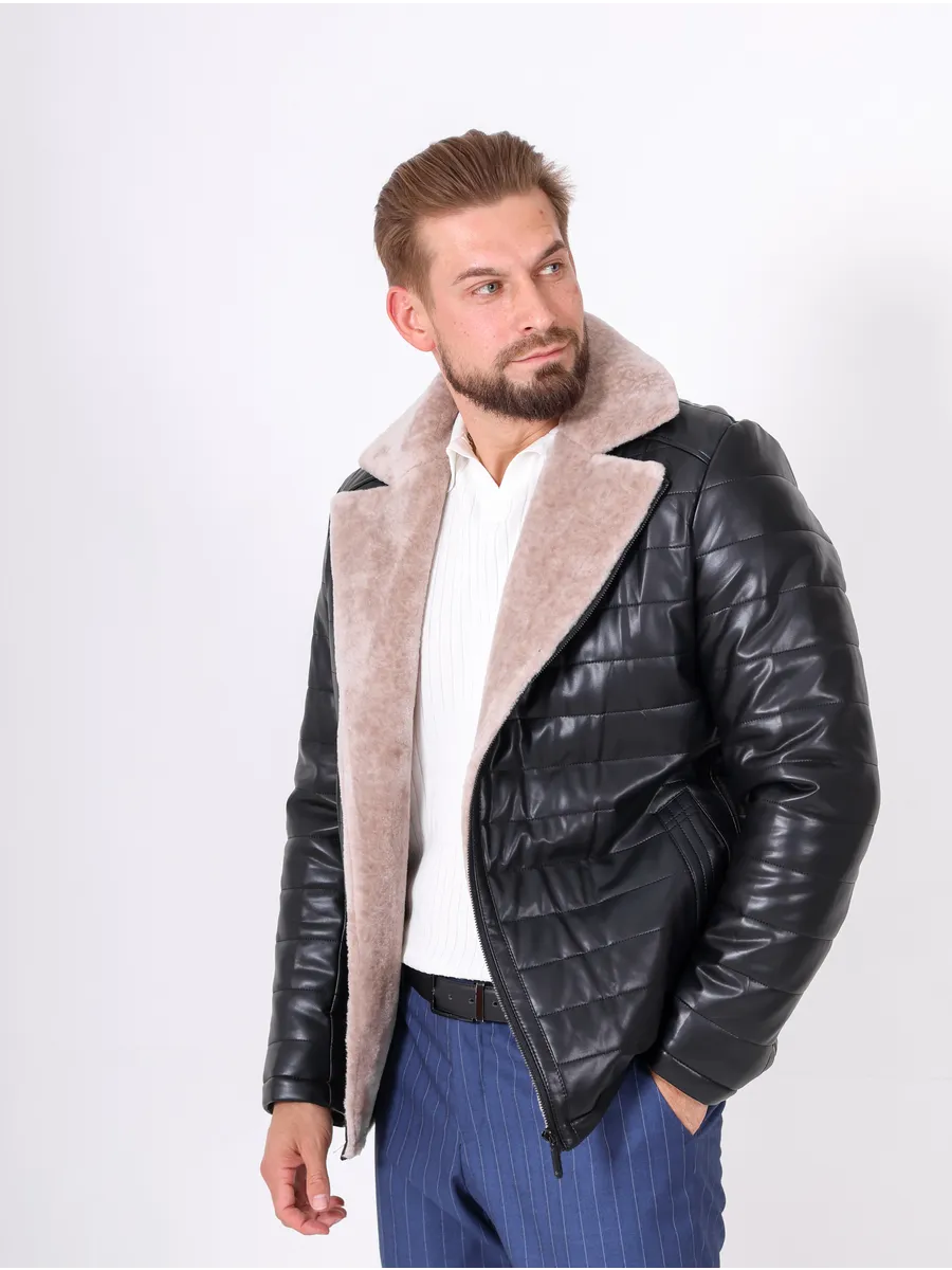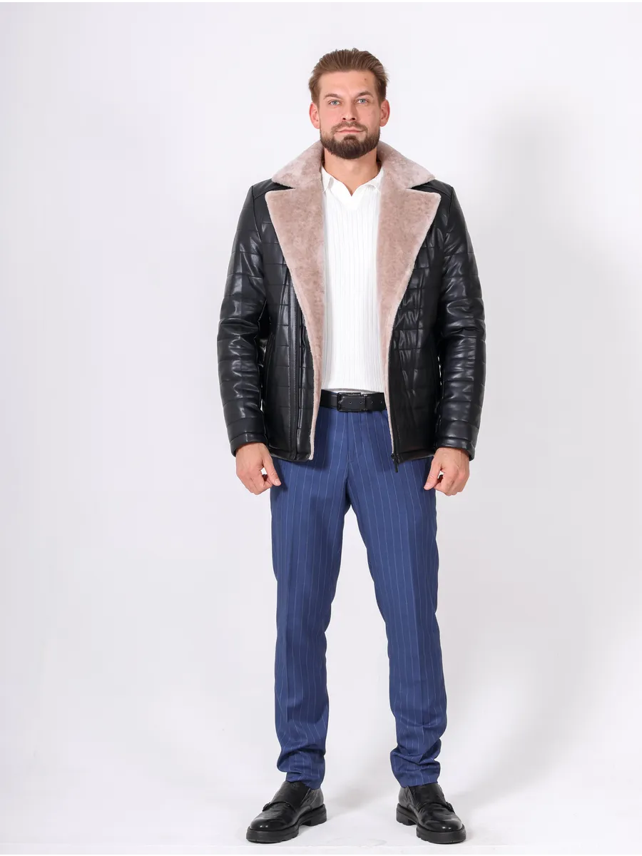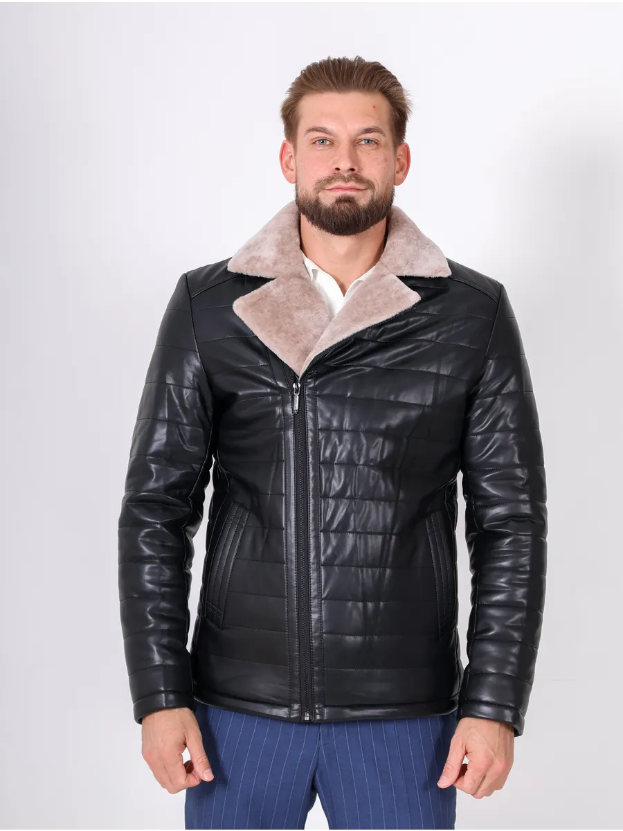 Куртка мужская кожаная зимняя на меховом подкладе- создаст современный, элегантный и динамичный мужской лук. ВНИМАНИЕ! ИЗДЕЛИЕ МАЛОМЕРИТ, РЕКОМЕНДУЕТСЯ ЗАКАЗЫВАТЬ НА РАЗМЕР БОЛЬШЕ. Куртка выполнена из качественных фабричных материалов: PU-кожа состоит из полиуретана и натурального кожаного сырья, что придаёт изделию дополнительную износостойкость и теплозащиту. Изнутри (включая рукава) куртка утеплена мягким, приятным в прикосновении эко-мехом, который согреет даже в сильный мороз. Центральная застежка на молнию переходит в двубортный ворот. На куртке имеется два внешних кармана и два надёжных внутренних. Современная и популярная модель. Идеально впишется в ваш образ, позволяя стильно завершить как деловой, так и casual образ. Необходимая составляющая мужского гардероба, подходит для разного возраста.***теплая куртка мужская зимняя на меху меховая с мехом/пуховик зимний мужской с опушкой/куртка мужская кожаная зимняя/укороченная мужская куртка/зимние куртки пуховики мск спб/мужская зимняя верхняя одежда на зиму/косуха мужская зимняя кожанка/модная современная стильная молодежная мужская зимняя куртка бомбер зима 2022-2023/базовая мужская куртка зима/крутая мужская куртка кожа/куртка зимняя большие размеры в большом размере большая большого размера/меховая куртка из меха/кожаный бомбер/кожаный пуховик кожаная дубленка/куртка кожа зима/дубленка мужская/куртка-пиджак/куртка мужская зима/спортивные пуховики мужские/куртка зима/зимняя спортивная одежда для мужчин/куртка для мальчика для подростка куртка подростковая/новинки мужской одежды/пуховик мужской зима/пальто зимнее по акции большой размер