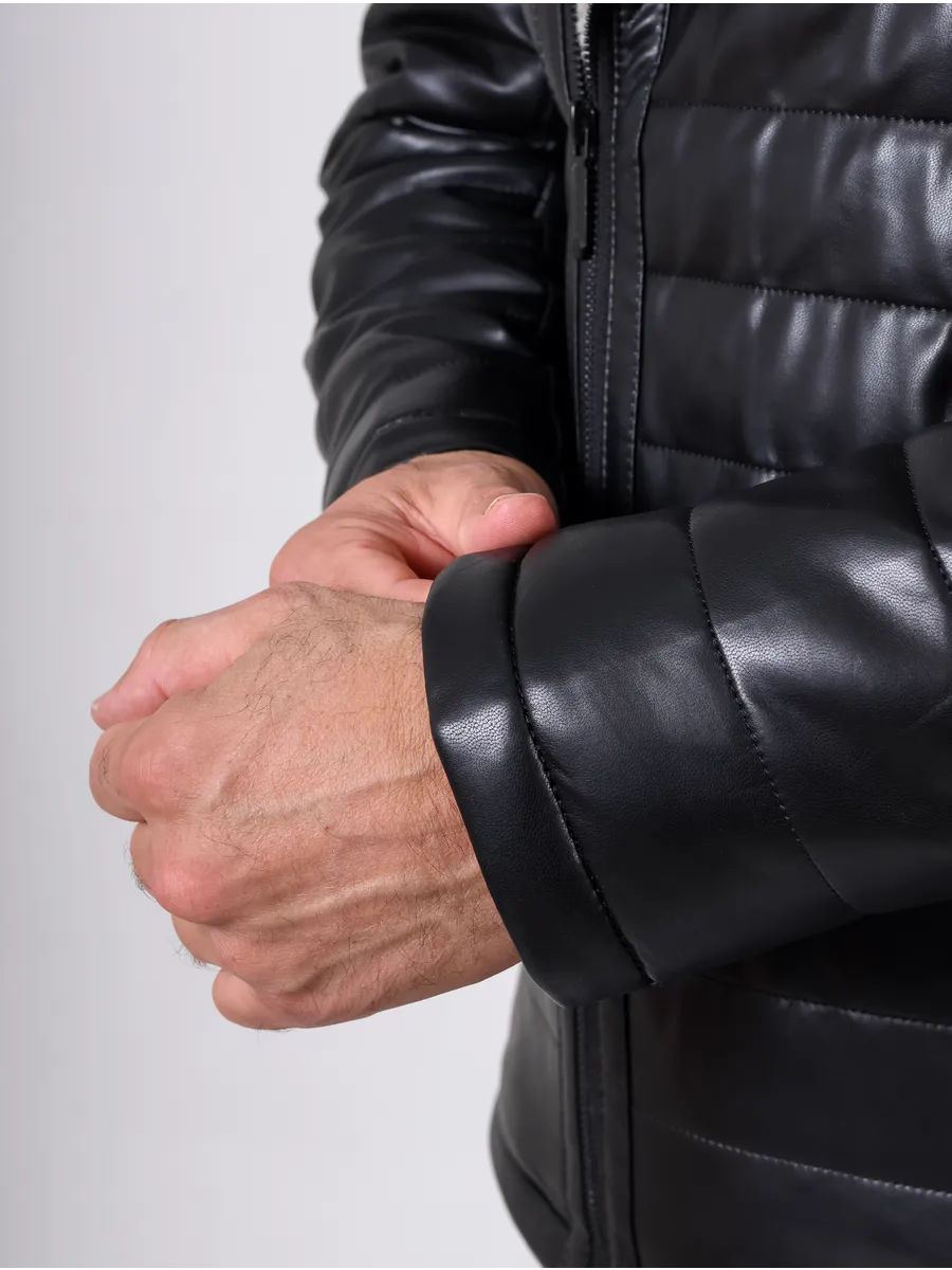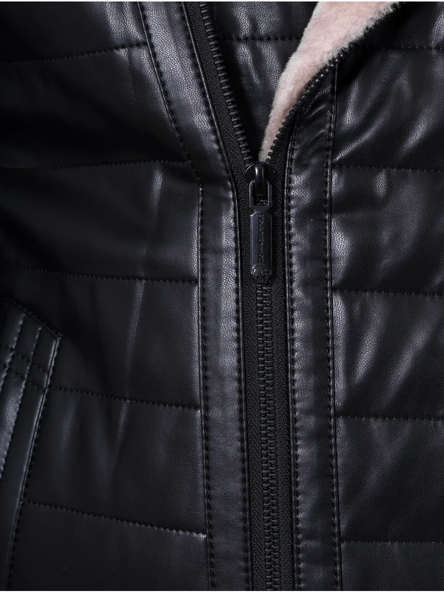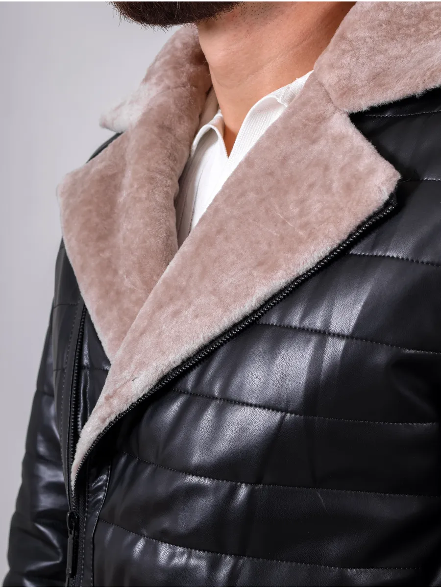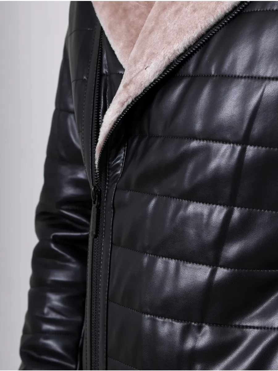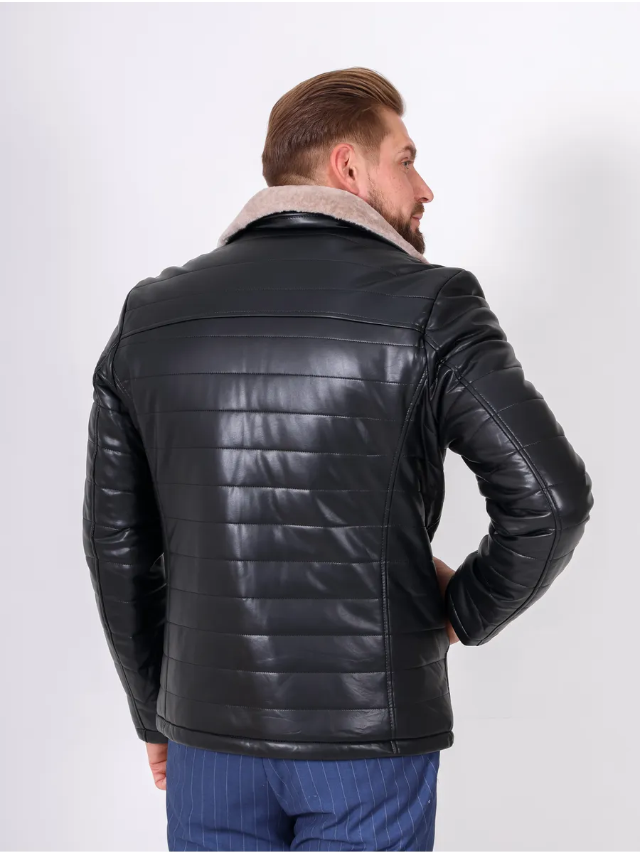 Куртка мужская кожаная зимняя на меховом подкладе- создаст современный, элегантный и динамичный мужской лук. ВНИМАНИЕ! ИЗДЕЛИЕ МАЛОМЕРИТ, РЕКОМЕНДУЕТСЯ ЗАКАЗЫВАТЬ НА РАЗМЕР БОЛЬШЕ. Куртка выполнена из качественных фабричных материалов: PU-кожа состоит из полиуретана и натурального кожаного сырья, что придаёт изделию дополнительную износостойкость и теплозащиту. Изнутри (включая рукава) куртка утеплена мягким, приятным в прикосновении эко-мехом, который согреет даже в сильный мороз. Центральная застежка на молнию переходит в двубортный ворот. На куртке имеется два внешних кармана и два надёжных внутренних. Современная и популярная модель. Идеально впишется в ваш образ, позволяя стильно завершить как деловой, так и casual образ. Необходимая составляющая мужского гардероба, подходит для разного возраста.***теплая куртка мужская зимняя на меху меховая с мехом/пуховик зимний мужской с опушкой/куртка мужская кожаная зимняя/укороченная мужская куртка/зимние куртки пуховики мск спб/мужская зимняя верхняя одежда на зиму/косуха мужская зимняя кожанка/модная современная стильная молодежная мужская зимняя куртка бомбер зима 2022-2023/базовая мужская куртка зима/крутая мужская куртка кожа/куртка зимняя большие размеры в большом размере большая большого размера/меховая куртка из меха/кожаный бомбер/кожаный пуховик кожаная дубленка/куртка кожа зима/дубленка мужская/куртка-пиджак/куртка мужская зима/спортивные пуховики мужские/куртка зима/зимняя спортивная одежда для мужчин/куртка для мальчика для подростка куртка подростковая/новинки мужской одежды/пуховик мужской зима/пальто зимнее по акции большой размер
