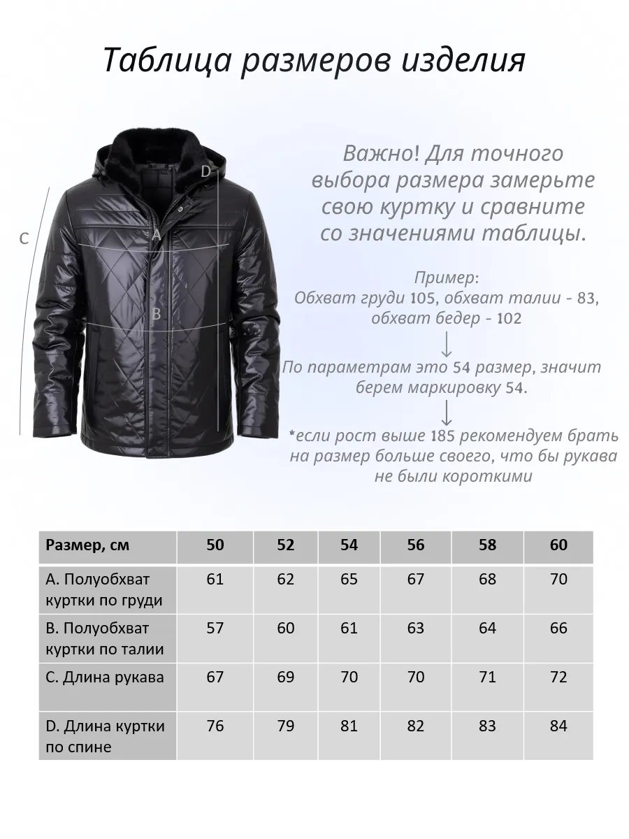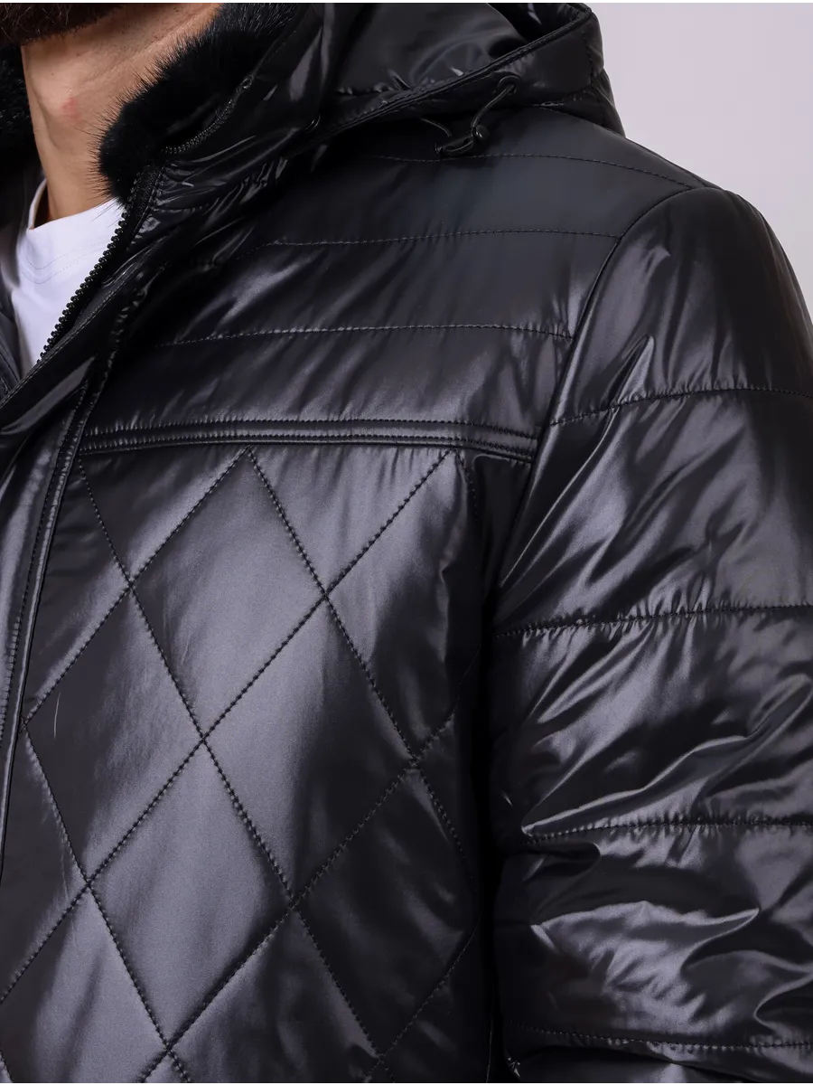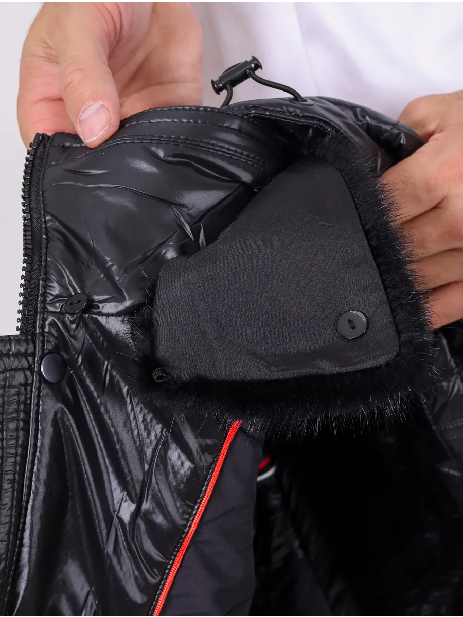 Мужская зимняя куртка - это настоящая находка для тех, кто ищет стильное и практичное решение для зимнего периода. Эта куртка выполнена из высококачественного материала. Куртка утеплена синтепоном и верблюжьей шерстью, что поможет вам чувствовать себя комфортно и тепло в любых погодных условиях. В то же время, она легкая и невероятно удобная, что обеспечивает свободу движений и не создает никаких неудобств при ношении. Главной особенностью куртки, является воротник из меха норки, это добавляет изюминки и смотрится дорого. Куртка зимняя мужская имеет два внешних кармана и съемный капюшон. Укороченный фасон стеганой куртки с капюшоном и универсальный черный цвет делают эту теплую куртку подходящей для мужчин любого возраста. Зимняя курточка представлена в различных размерах, включая большие, так что каждый сможет найти именно свой идеальный вариант. Данная модель подойдет для активной жизни и повседневных прогулок, ее можно сочетать с различными предметами гардероба. Стеганая куртка станет ярким акцентом в вашем стиле. В нашем магазине представлено большое количество мужской верхней одежды. Не упустите возможность приобрести качественную одежду для себя и своих близких!
