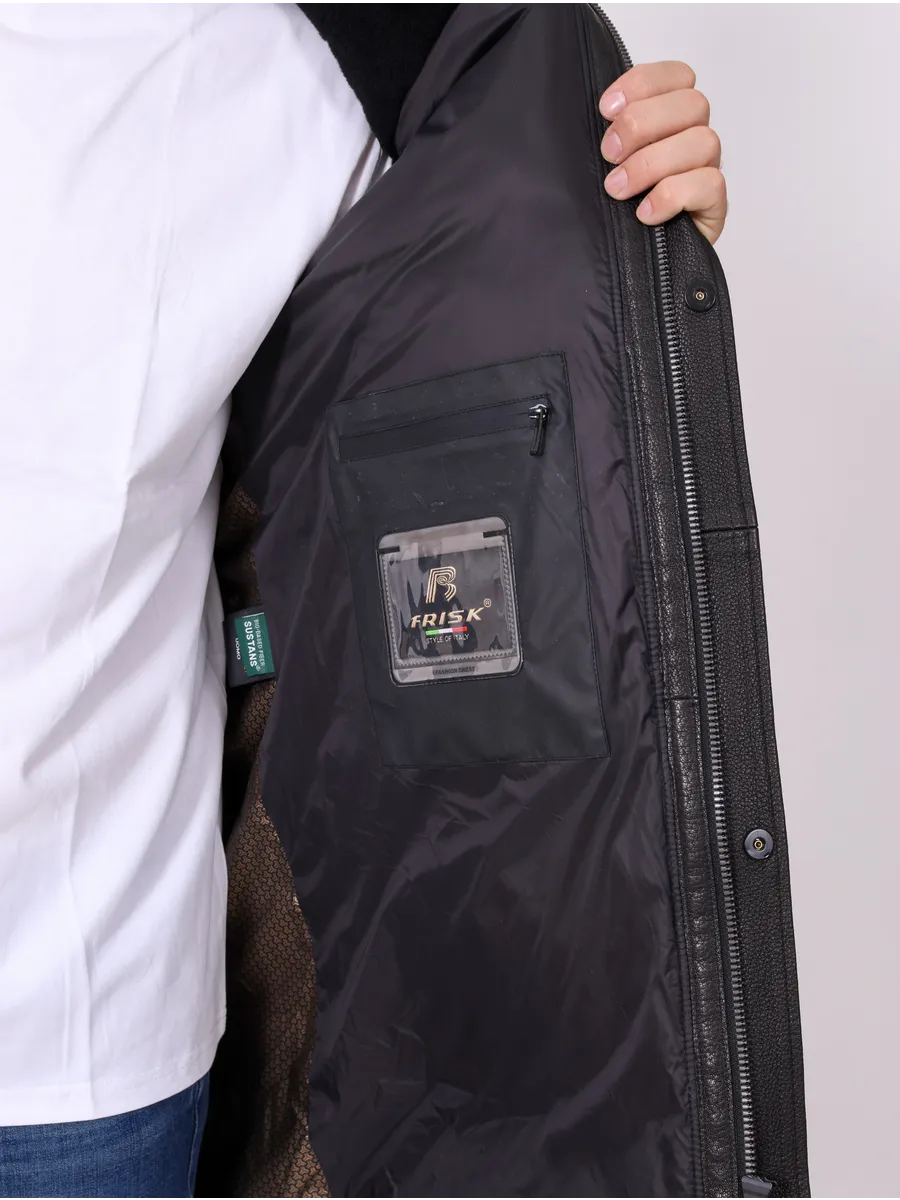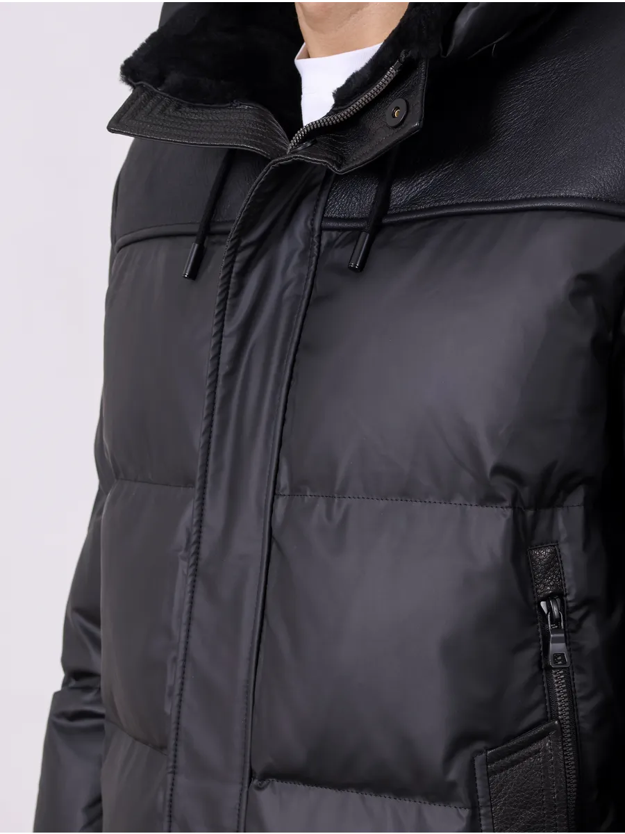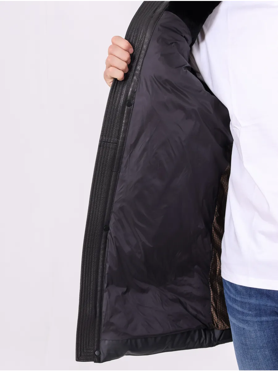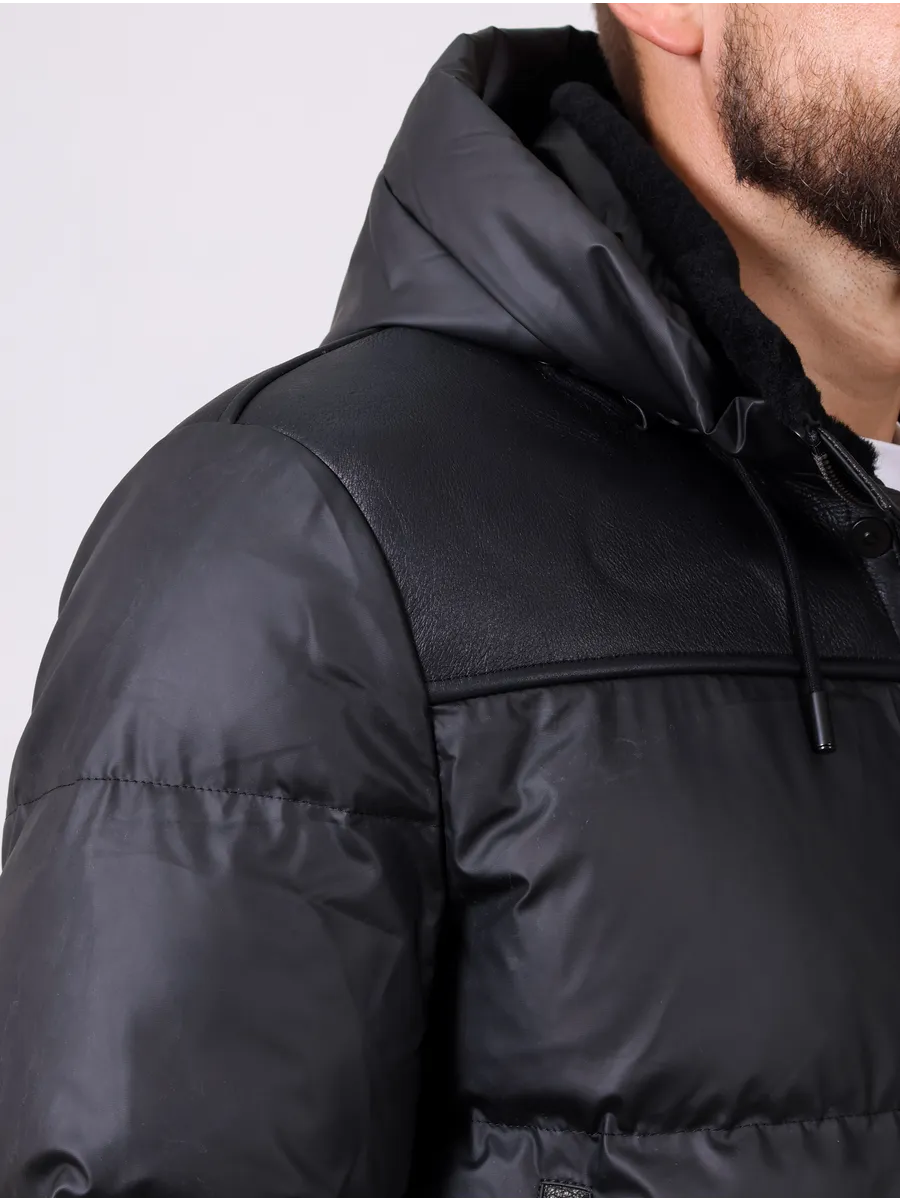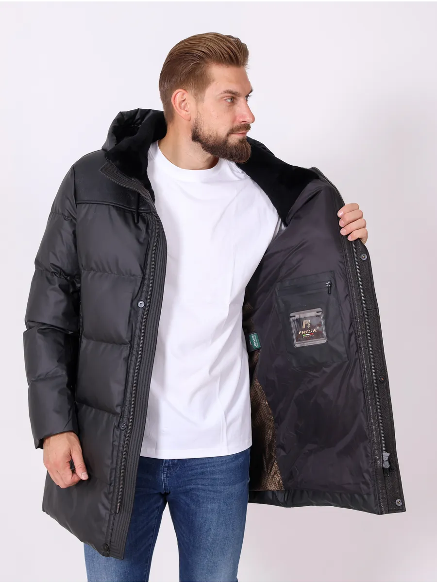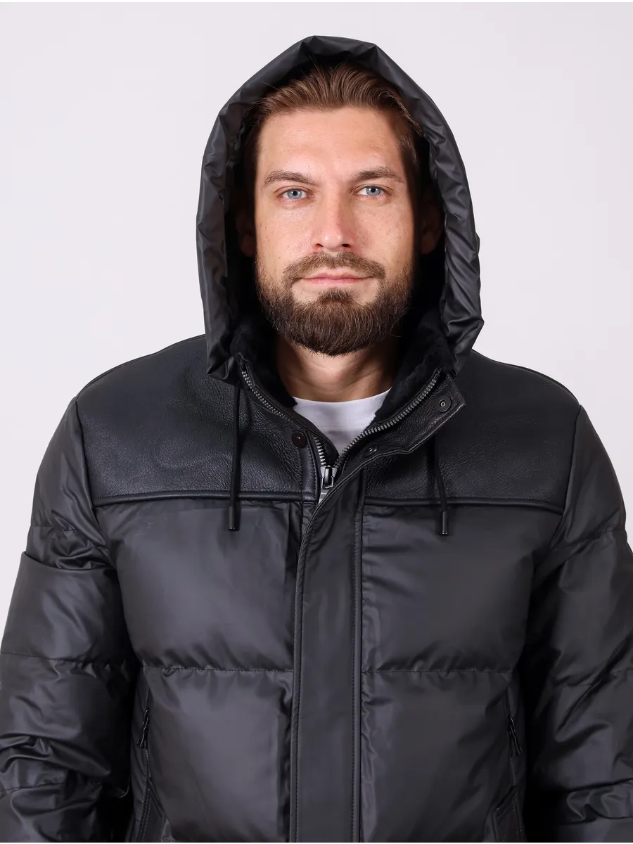 Теплая зимняя мужская куртка станет незаменимым элементом вашего гардероба в холодное время года. Куртка зимняя с капюшоном имеет стеганый дизайн, который обеспечивает равномерное распределение утеплителя, сохраняя тепло и предотвращая образование холодных зон. Стеганая мужская куртка большого размера подходит как для повседневной носки, так и для более формальных случаев. Практичность классической удлиненной куртки с капюшоном подчеркивается наличием теплого меха на воротнике, что делает этот пуховик стильным и необычным. Верхний слой теплого классического зимнего пальто изготовлен из высококачественного материала в составе которого полиэстер и отделка из натуральной кожи. Фурнитура premium черного цвета на карманах и по всей длине. Наполнитель теплой куртки - био пух. Этот материал эффективно удерживает тепло. Люксовая куртка с меховым воротником - тренд зимней коллекции 2025-2026. ОБРАТИТЕ ВНИМАНИЕ! Куртка идеальной длины 90 см. Удлиненный фасон - до колен, надежно защищает от холода и ветра. Убедитесь сами, насколько верхняя мужская одежда может быть практичной и удобной! У нас представлена широкая размерная сетка от 46-58. Каждый мужчина сможет подобрать для себя вариант. Классический черный пуховик прямого кроя - неотъемлемая часть гардероба.